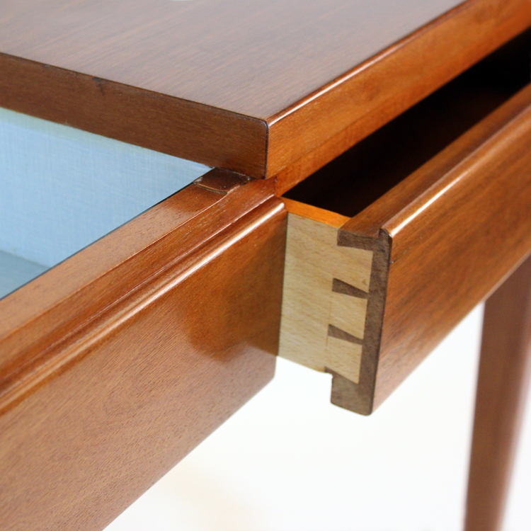 Mesa-Tocador Casa Suecia. Detalle del frontal con el cajón abierto