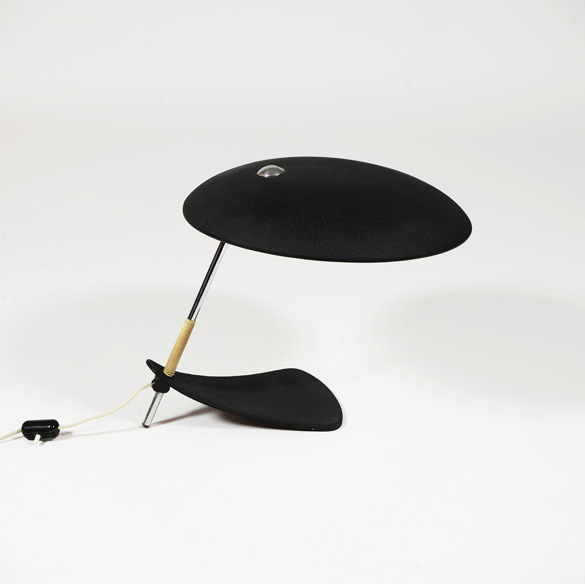 Lámpara de mesa diseño italiano de los años 50. Tradición y modernidad en un diseño que se caracteriza por las formas elegantes de la pantalla y la base.
